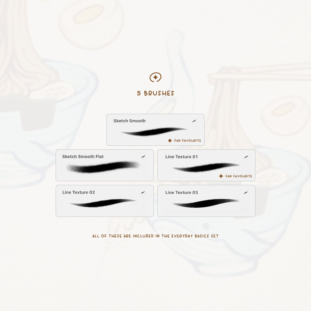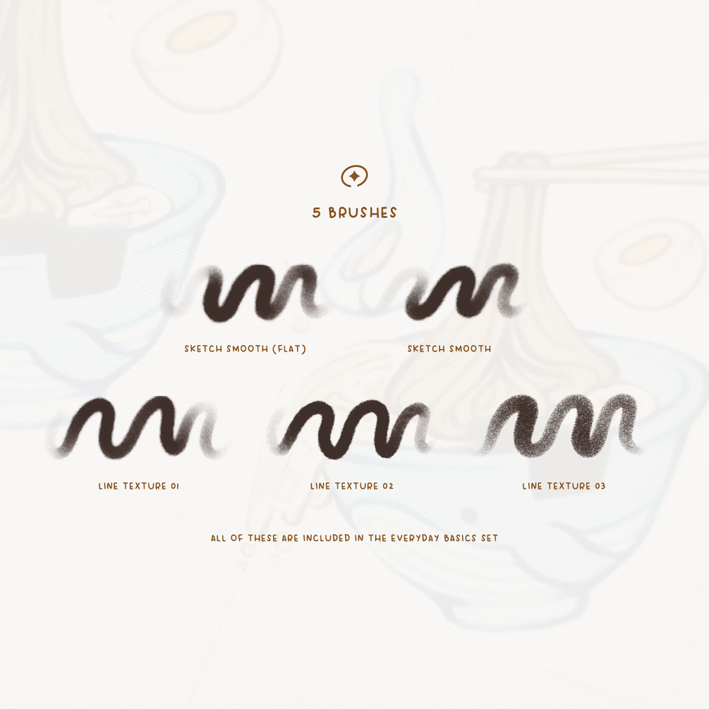 All brushes are included in the Everyday basics set. If you plan on buying the Everyday Basics set DO NOT BUY THIS SET, you will be buying the same brushes twice and my policy includes no refunds on digital goodies.